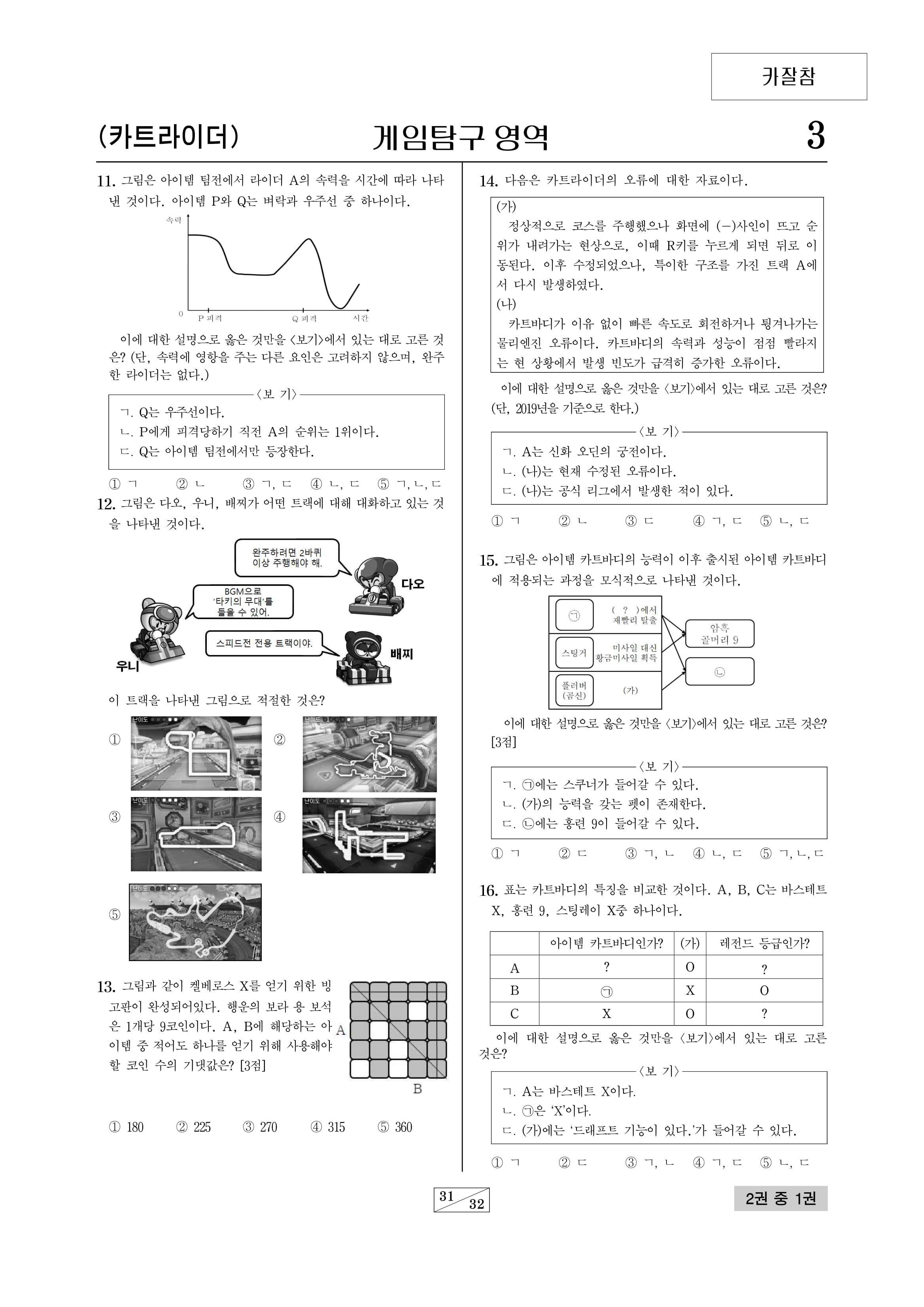 2019학년도 고인물능력시험 게임탐구영역(카트라이더) (1) | 2022.05.13 |